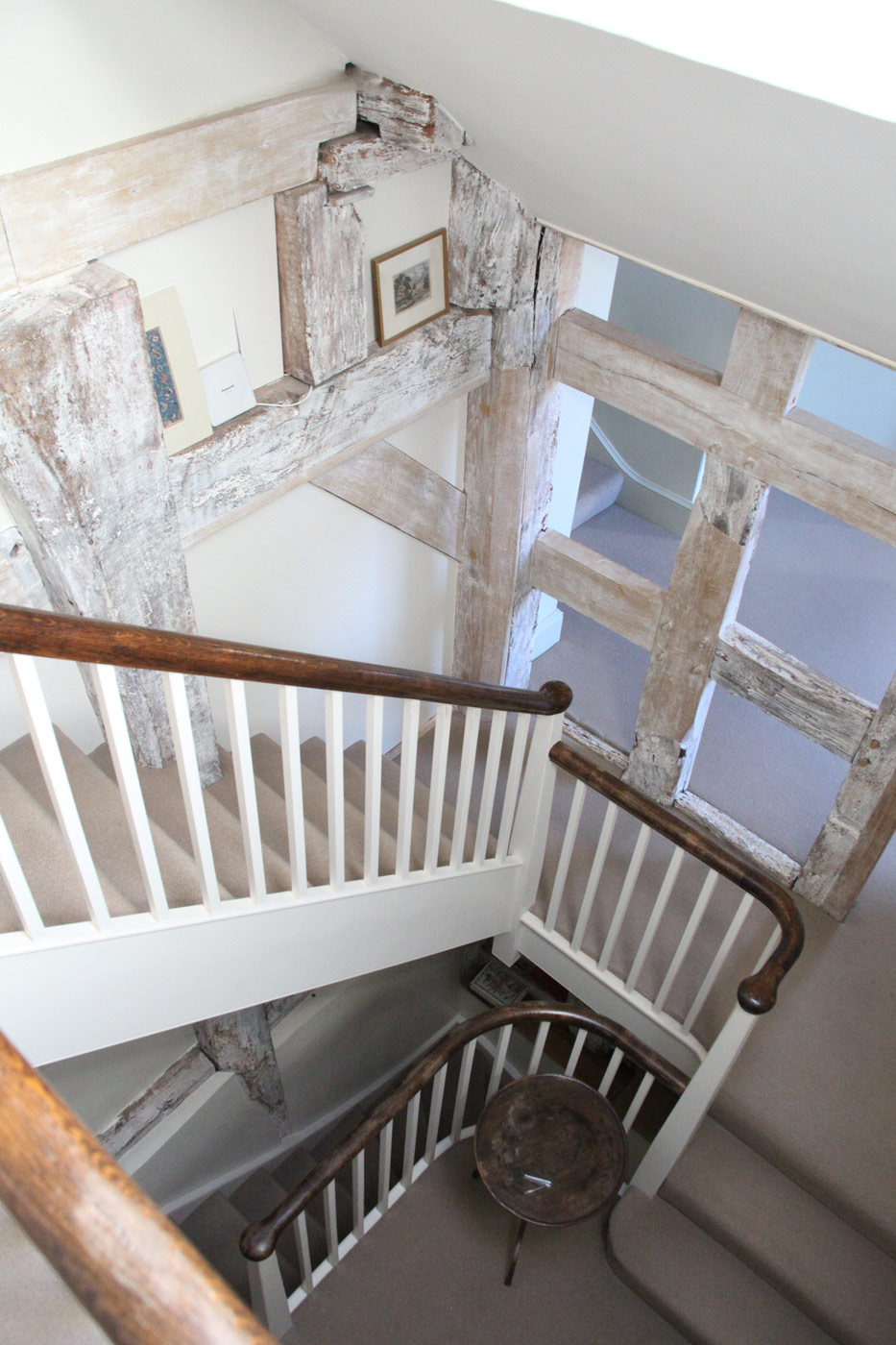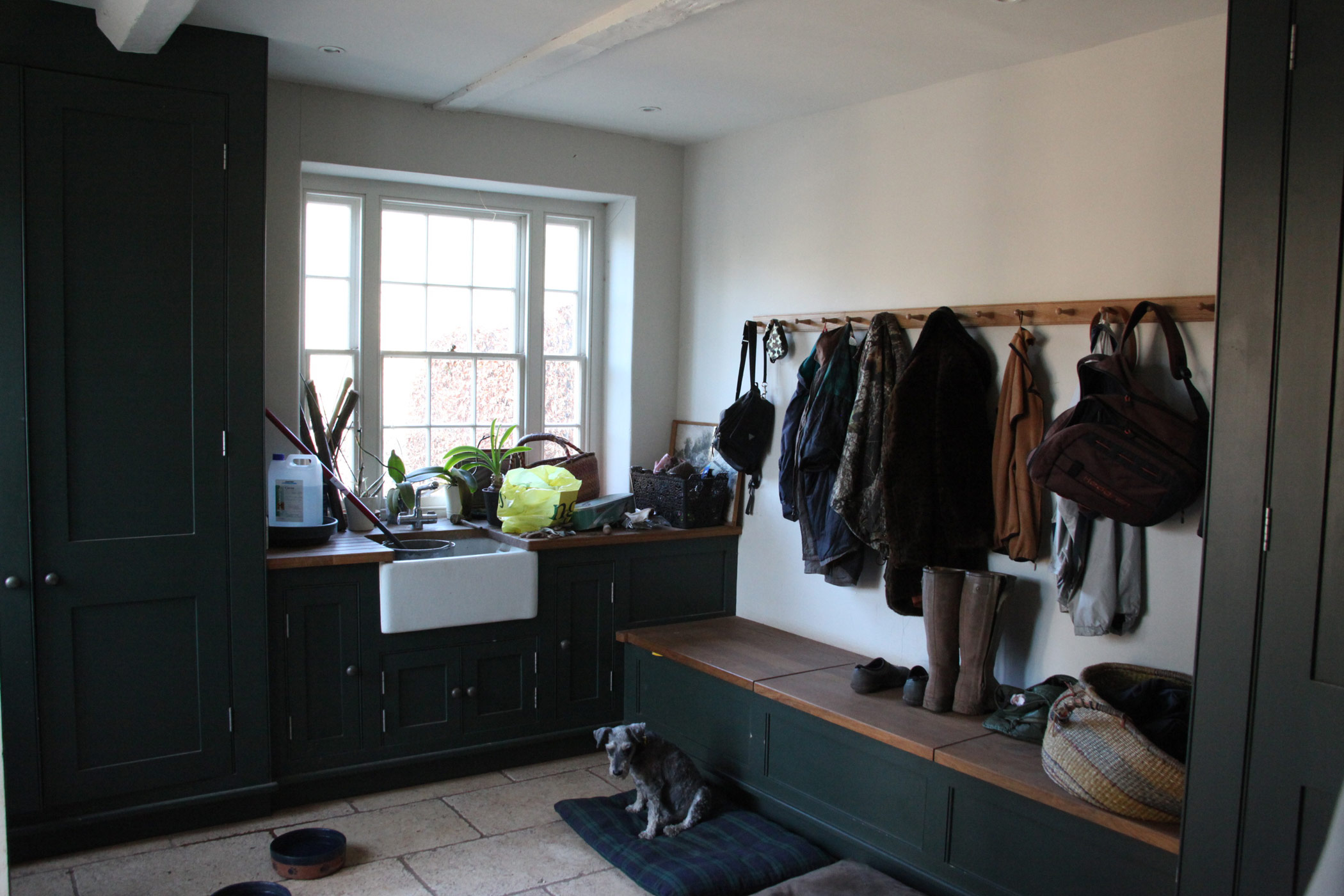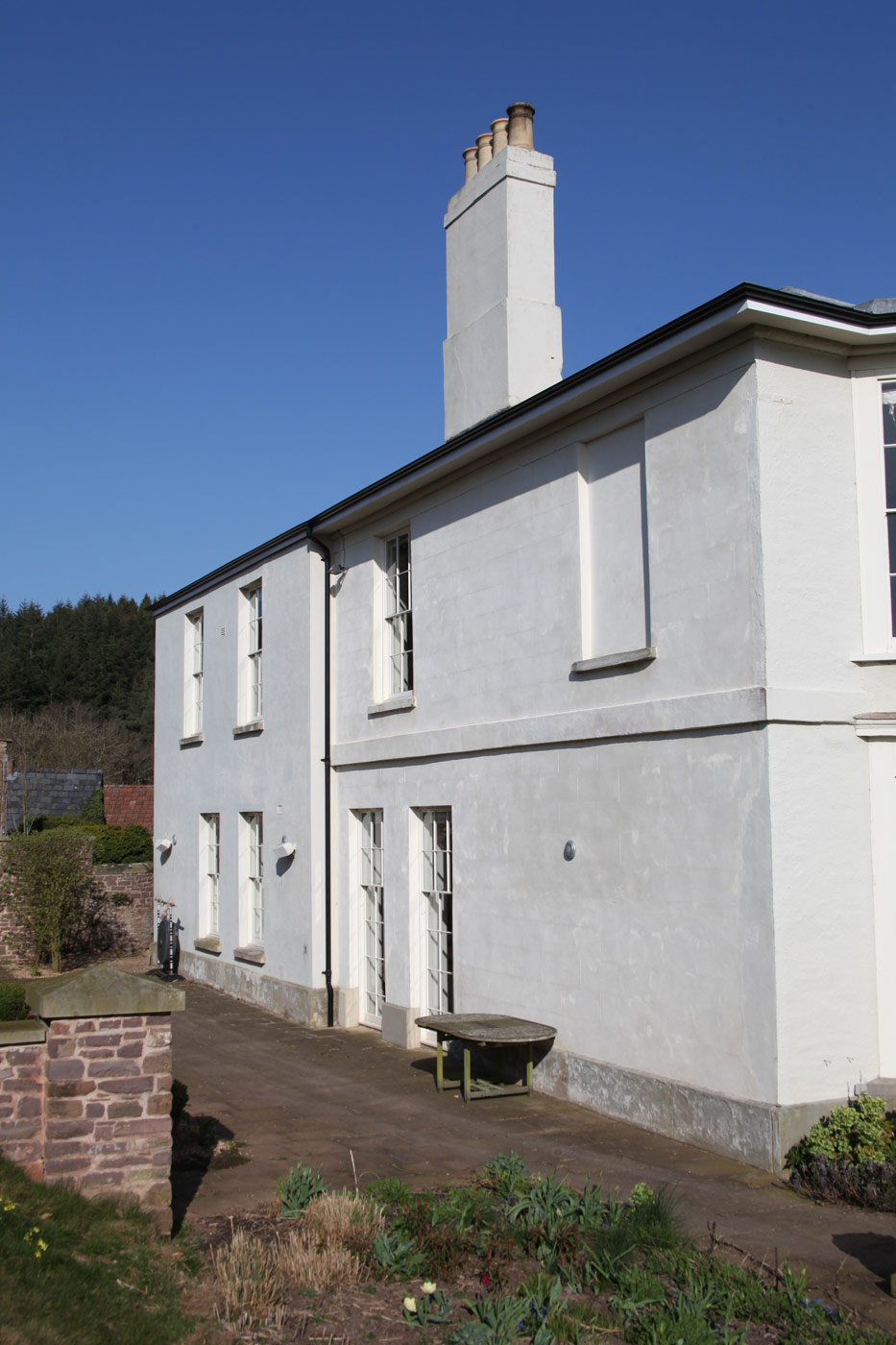This 18th century farm house had been extended in the 1950s, but was somewhat spoilt by a granolithic concrete staircase giving direct access from the kitchen wing to basement garages under the original drawing room. The landscape designer Tom Stuart-Smith suggested raising the ground and burying the basement, and fortunately the planner agreed. A notable improvement was the introduction of sash windows to the breakfast room, which could be raised sufficiently into the wall above to give egress for the six foot six client.