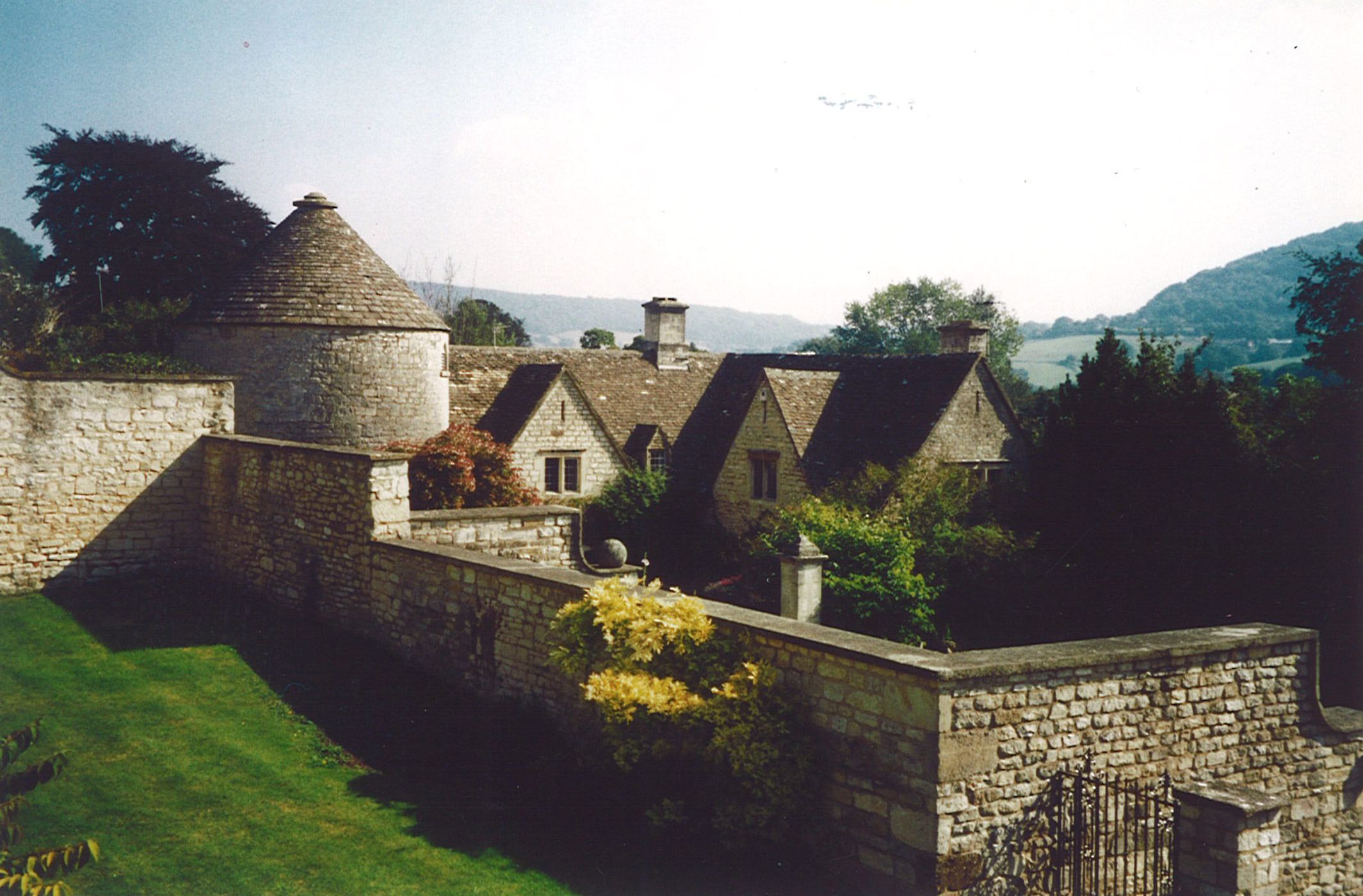 This house featured a single storey cedar clad kitchen extension. We extended it with the gable just to the right of the wool drying tower. This meant that we were able to add a kitchen, a study, a garage, and bedroom with an ensuite bathroom above.