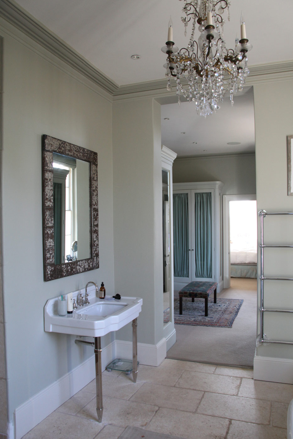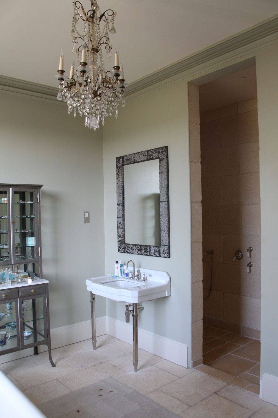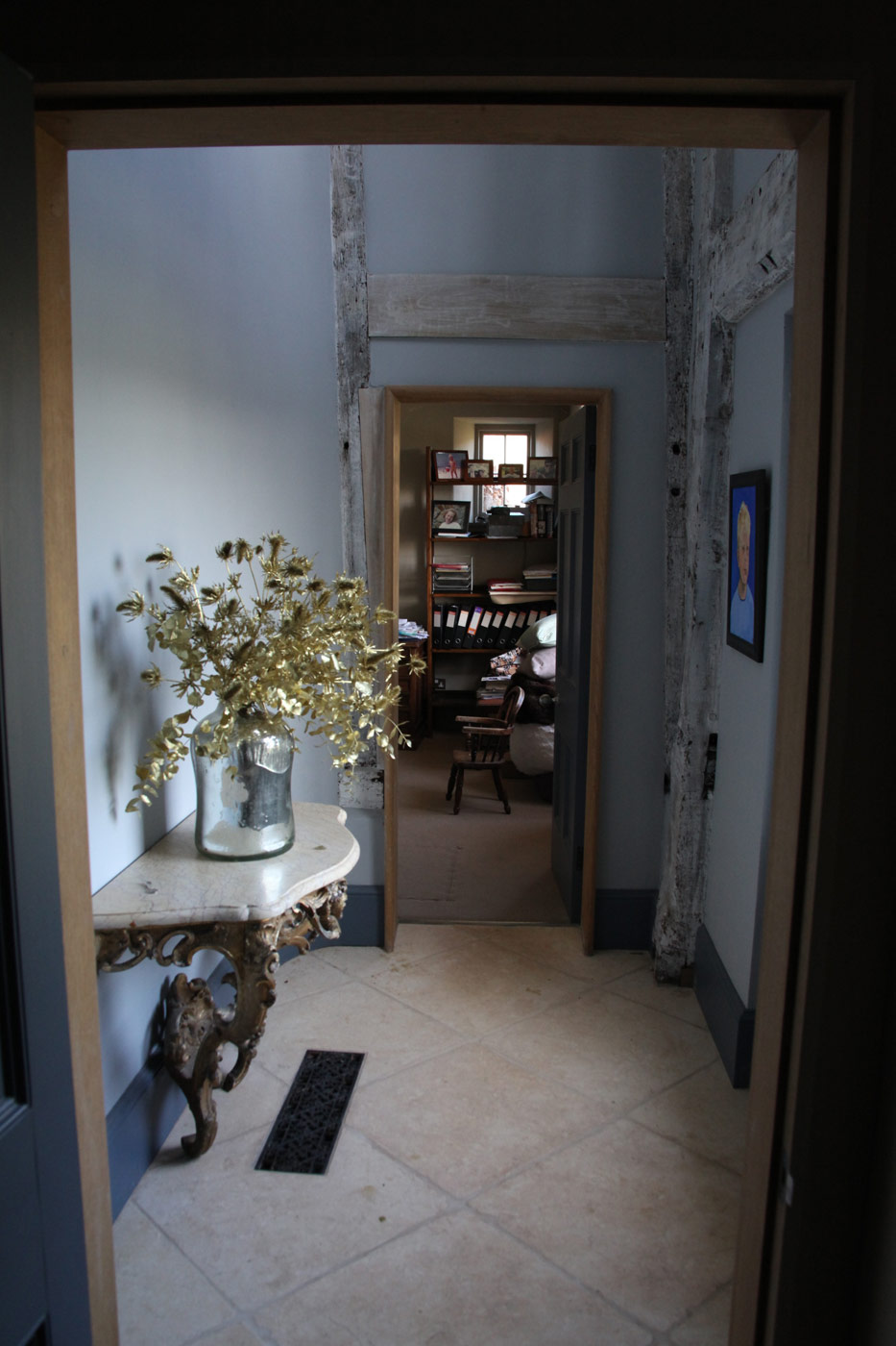 This 18th century farm house had been extended in the 1950s, but was somewhat spoilt by a granolithic concrete staircase giving direct access from the kitchen wing to basement garages under the original drawing room. The landscape designer Tom Stuart-Smith suggested raising the ground and burying the basement, and fortunately the planner agreed. A notable improvement was the introduction of sash windows to the breakfast room, which could be raised sufficiently into the wall above to give egress for the six foot six client.
