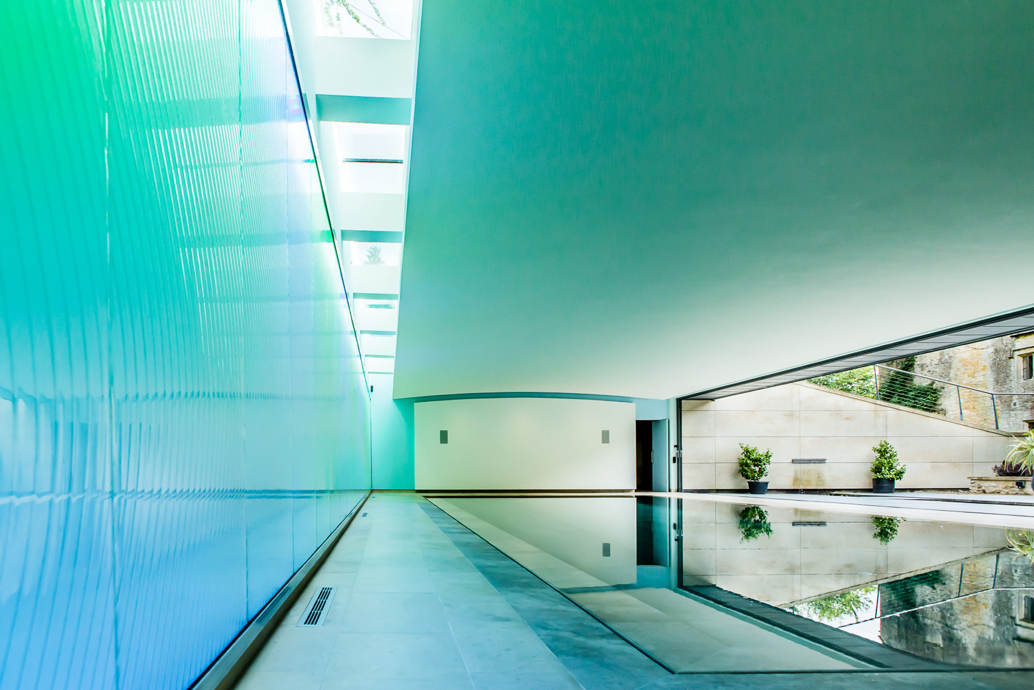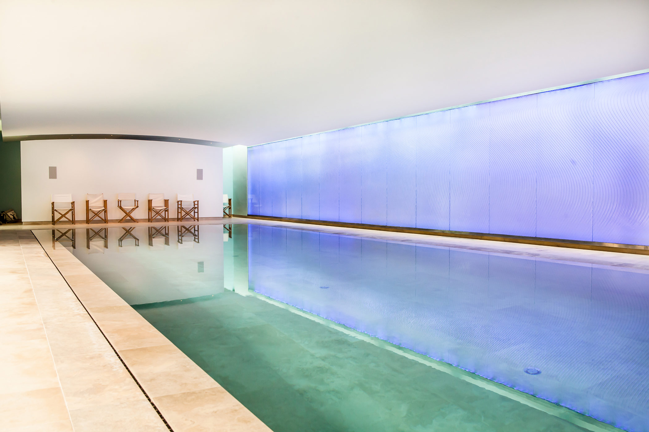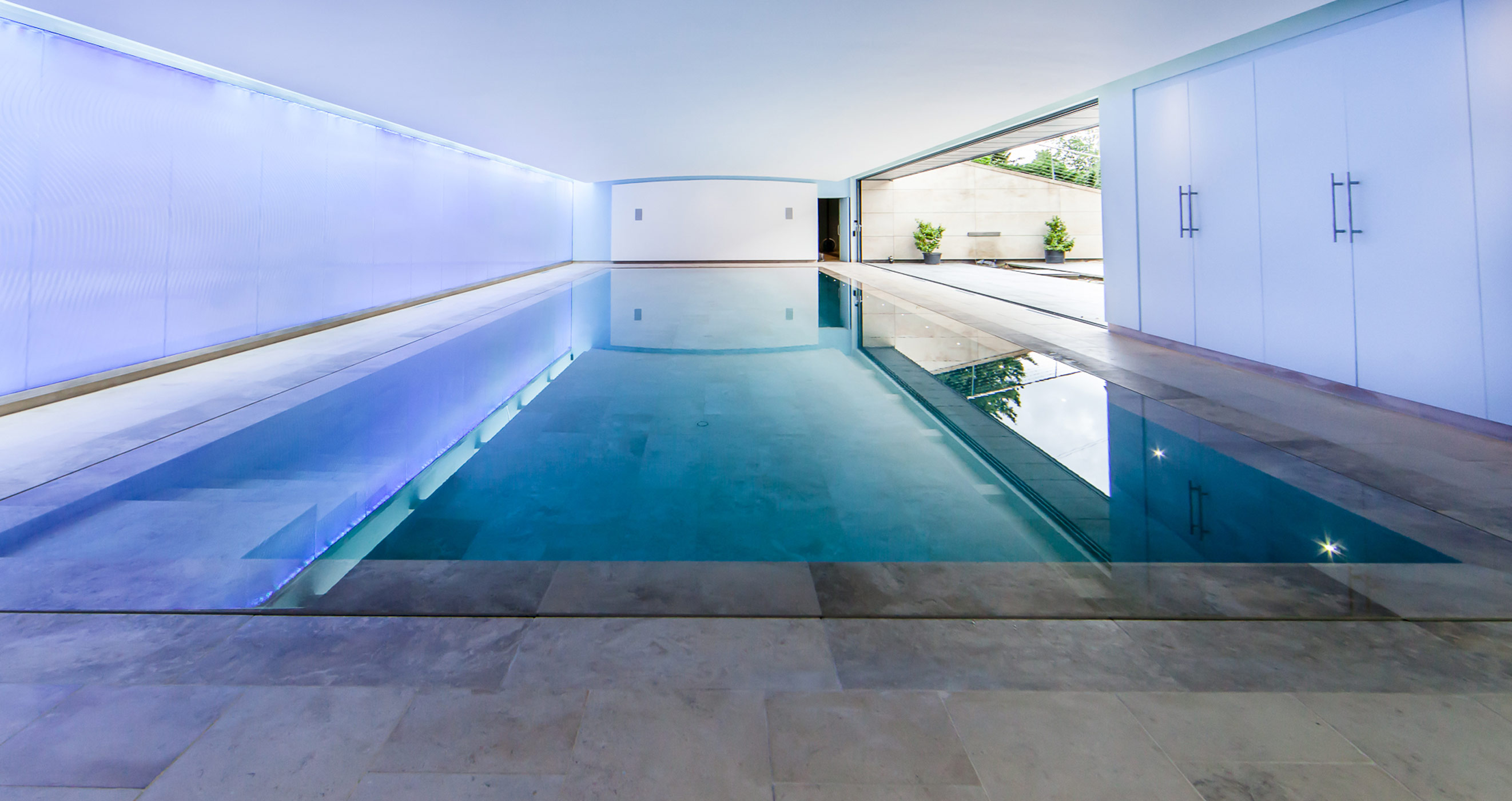 This conversion included the complete refurbishment of the main house and linking this to a new underground swimming pool and the adjoining barn. The structure of the swimming pool included a 900mm deep I-beam to span the glazed doors which retracted into the hillside. At the back of the pool was a 21 metre long rooflight flush with the grass above. The grass roof was used for cricket nets. The client did not approve any of the builders who tendered, and decided to take on the job himself with his own sub-contractors, making for a successful and stress-free contract.