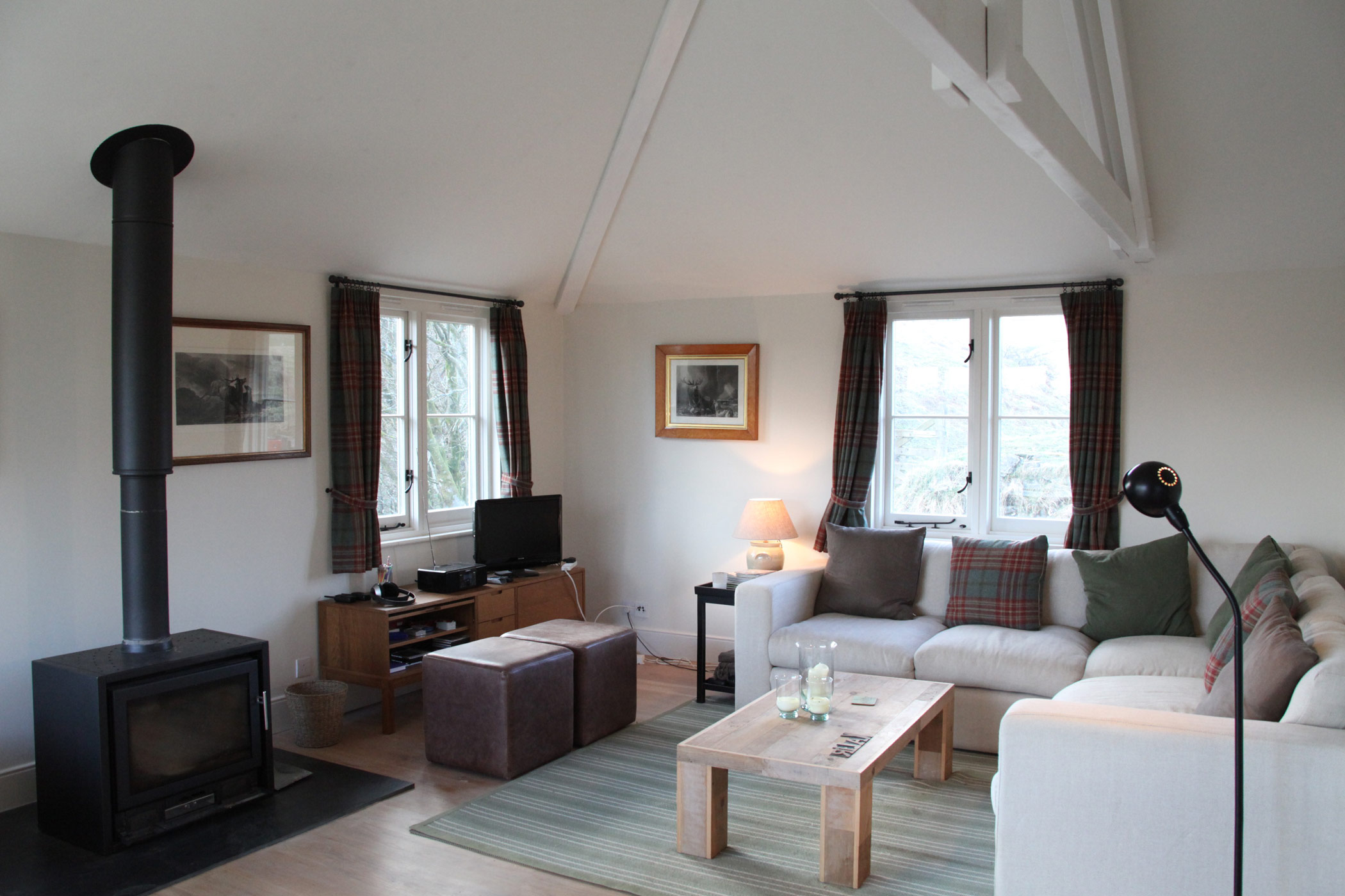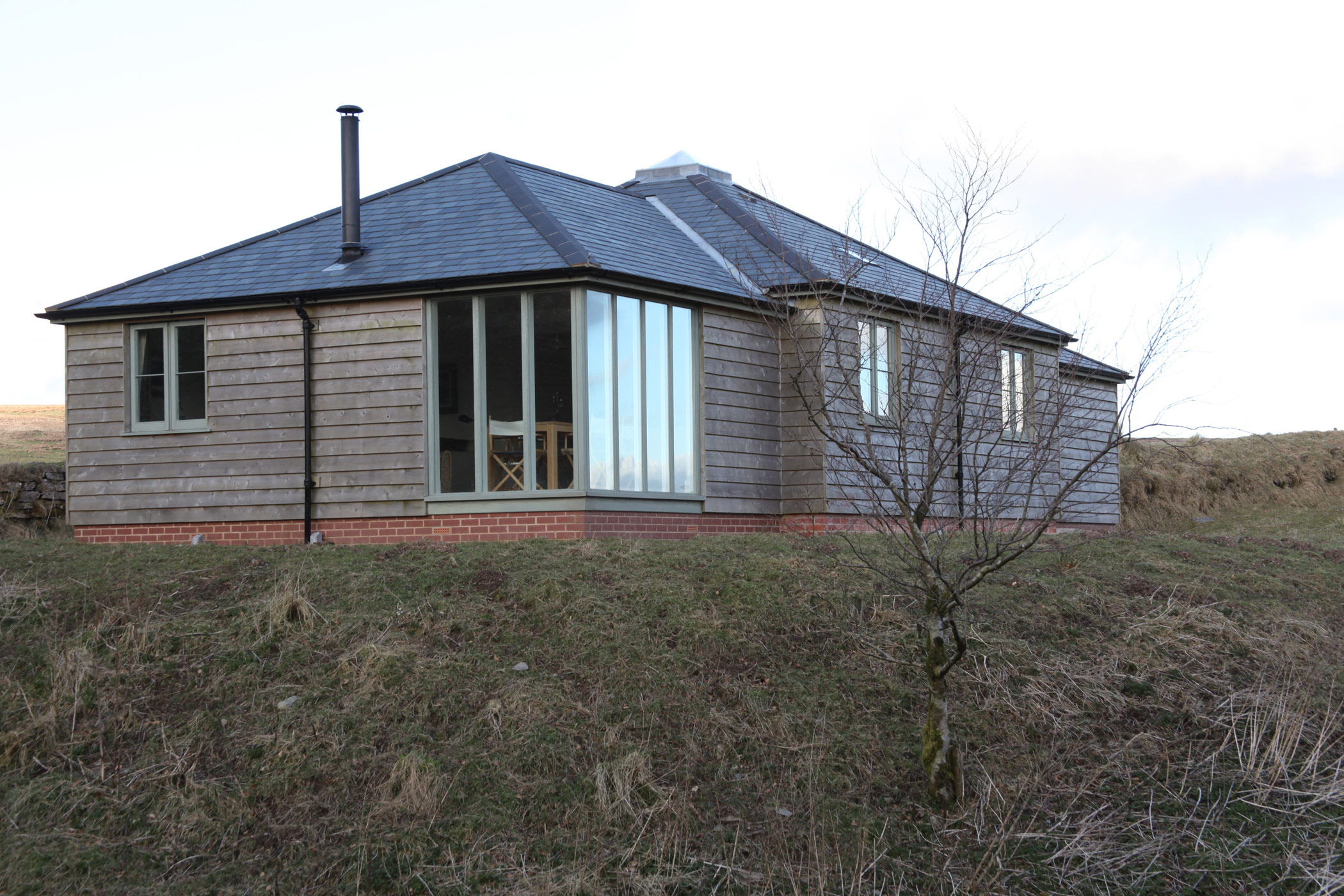 When my client bought this estate, the last thing he wanted to do was to vacate the estate manager and his family from the estate house. We were asked to convert a derelict hostel on the estate into a suitable dwelling, but we had to keep within the existing envelope. The house is characterised by a very high degree of insulation and an intentionally non-opening picture window on the windward corner. This property is situated at 1300 feet above sea level.
