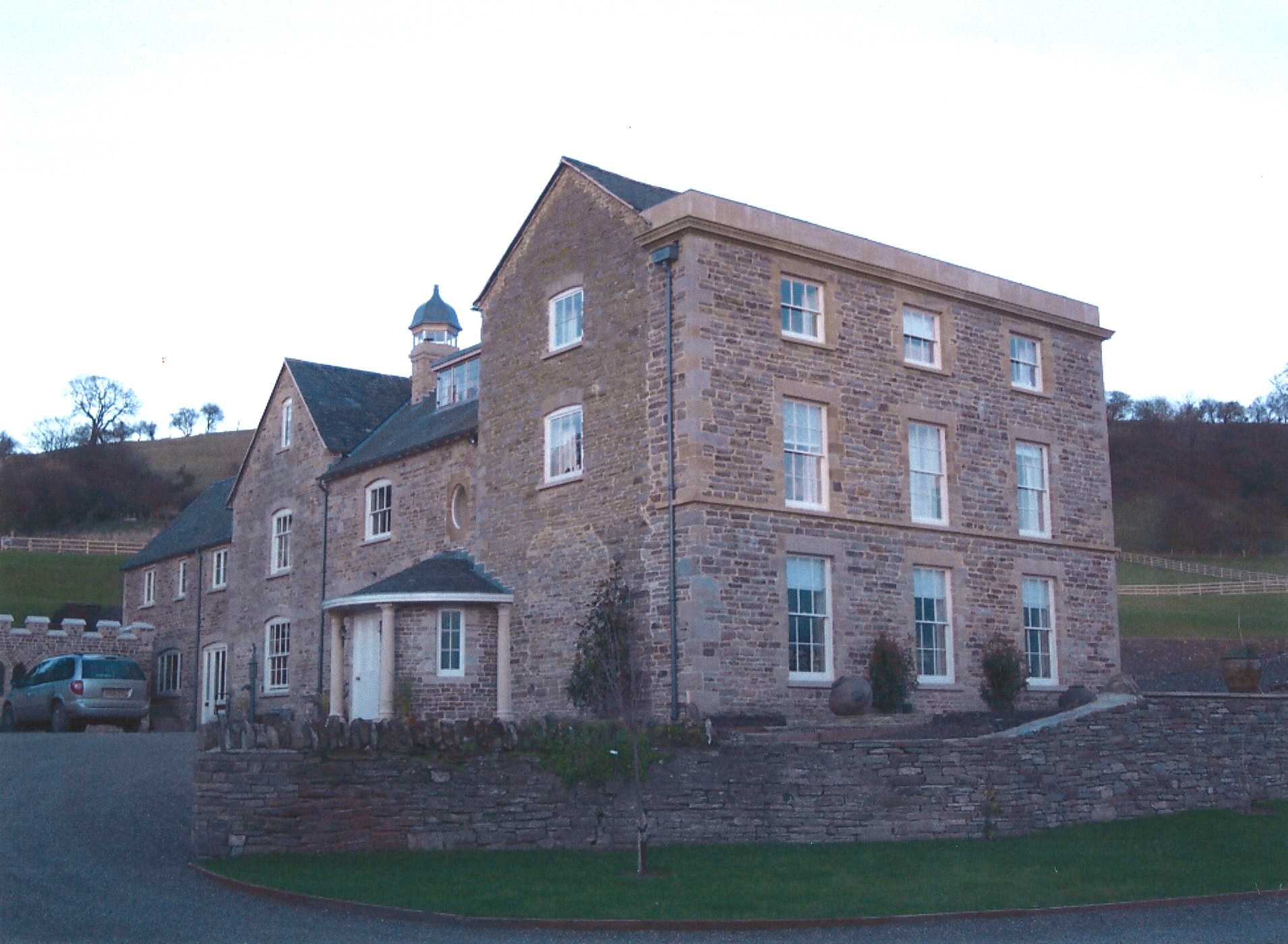 This had started out as a relatively modest farmhouse, albeit on a stunning site. The new three-storey extension was modelled on my own house, though I could never personally run to a parapet and cornice. The porch was copied from a particularly delightful cottage north of Leominster.
