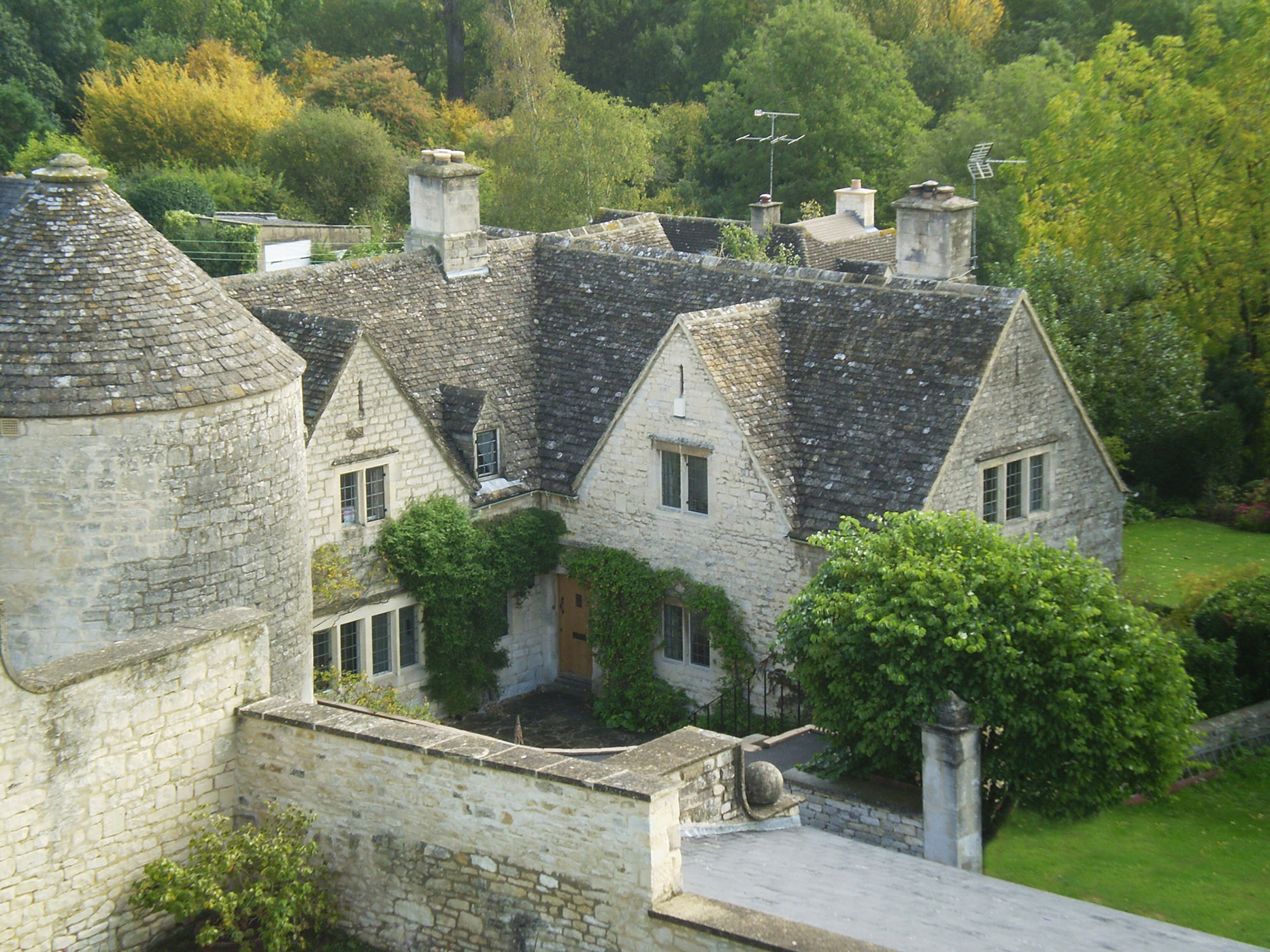 This house featured a single storey cedar clad kitchen extension. We extended it with the gable just to the right of the wool drying tower. This meant that we were able to add a kitchen, a study, a garage, and bedroom with an ensuite bathroom above.