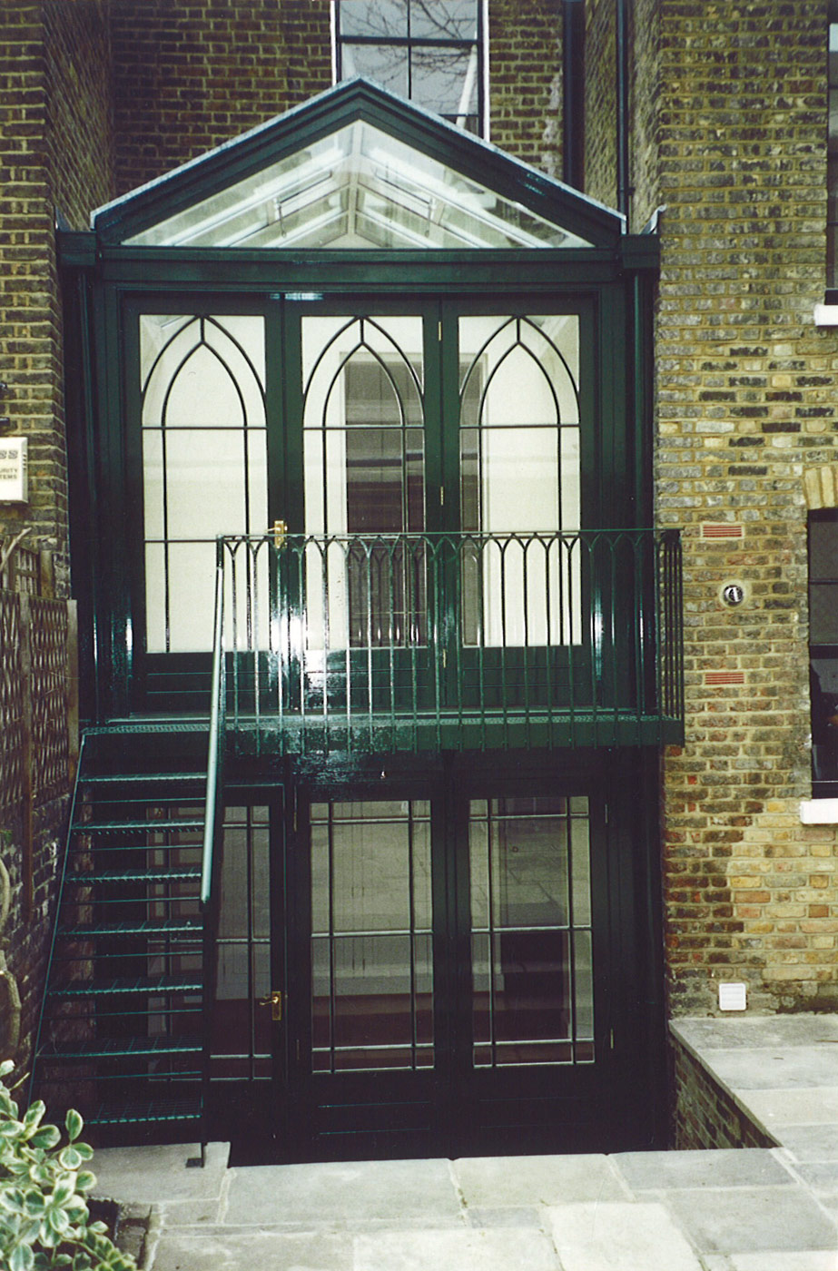 SOUTH TERRACE, LONDON SW7 This was a two storey extension at the back of a listed terrace house to provide a breakfast room at ground floor level and a bedroom below. Most of this was fabricated off site. Contractor: Alan Humphrey
